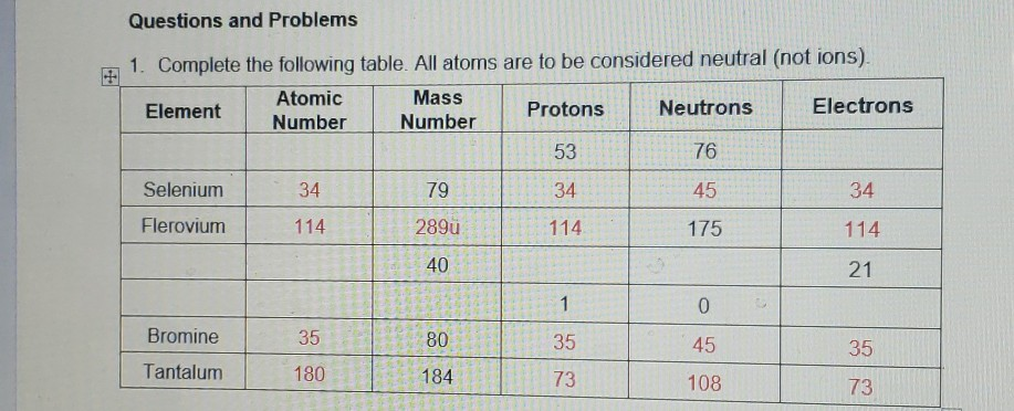 Solved How Many Electrons Protons And Neutrons Are Contained In Each Atom A Gallium 69 C Titanium 48 B Fluorine 23 D Tantalum 181